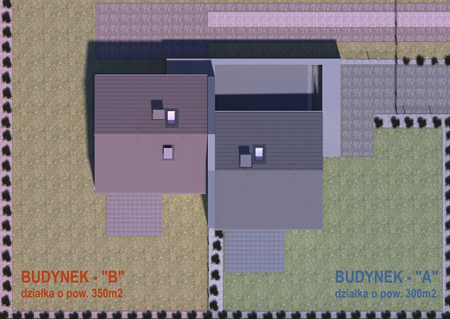 Przewidziano możliwość przyszłej, samodzielnej realizacji wolnostojącego garażu w głębi działki (segment B - bez garażu)