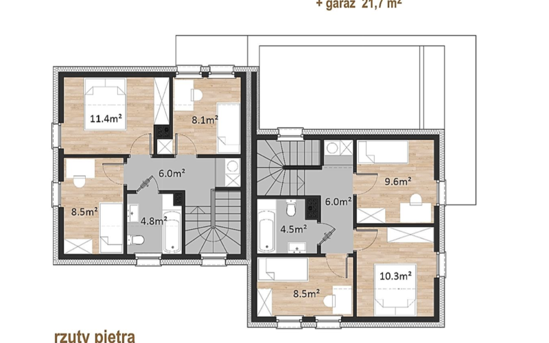 W budynkach przewidziano możliwość przyszłej, samodzielnej adaptacji nieużytkowego poddasza oraz realizacji wolnostojącego garażu w głębi działki (segment B - bez garażu)