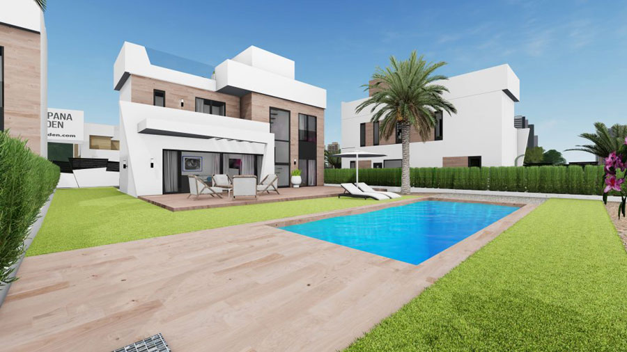 Wille te są wyjątkowe ze względu na swój wystrój i udogodnienia: duży salon, duże sypialnie z łazienkami na pierwszym piętrze i solarium. Bezpośrednie wyjście, z parteru na współczesny basen bez krawędzi i duży taras, to idylliczne miejsce na spędzenie wakacji, relaks i podziwianie zachodów słońca i widoków na morze Benidormu.