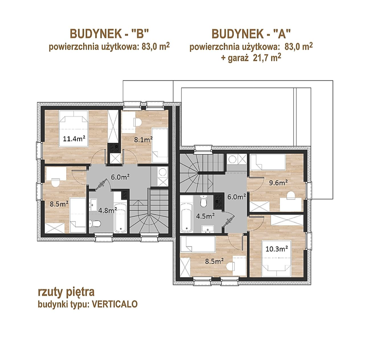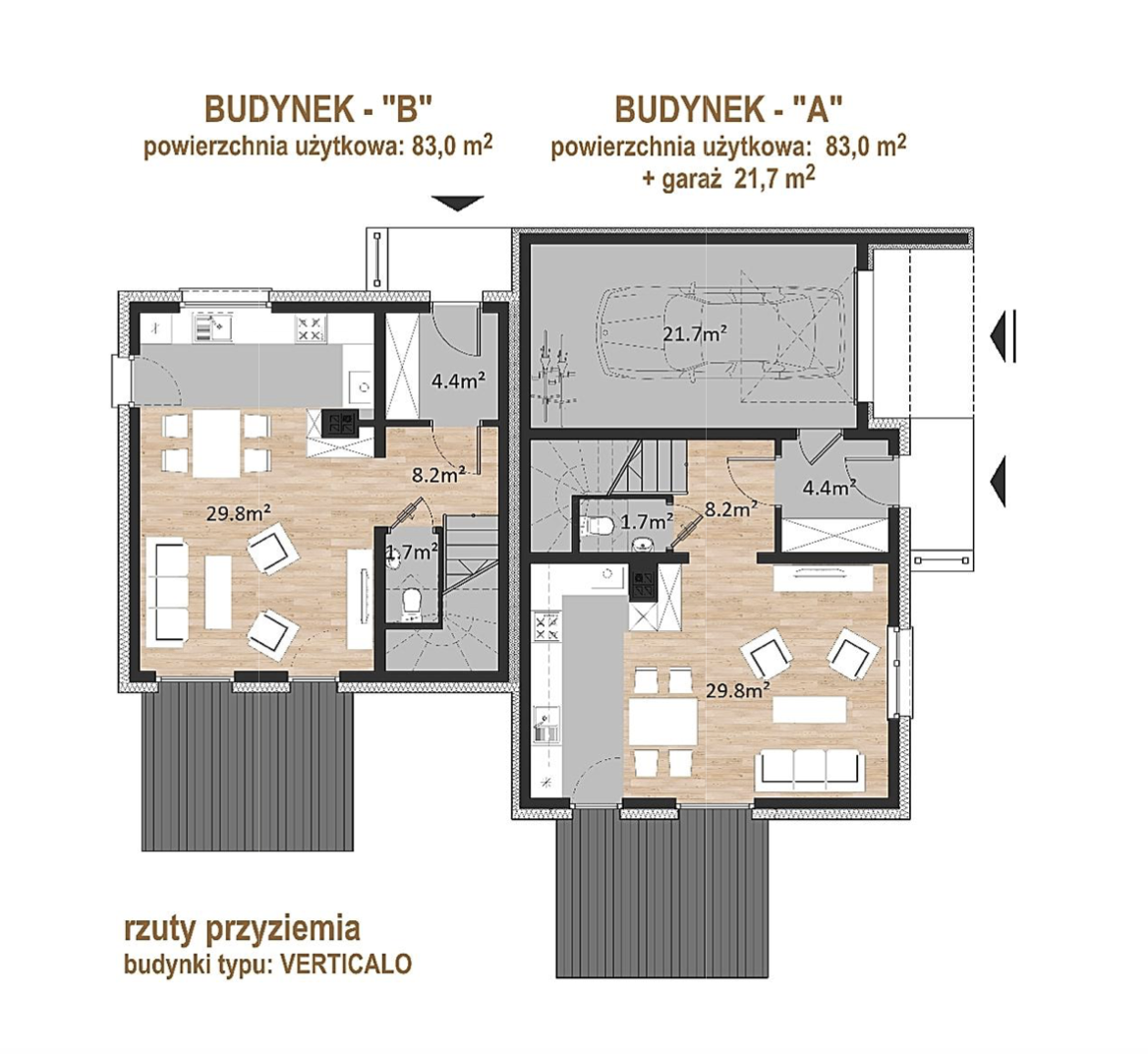 Oferujemy piętrowe, czteropokojowe segmenty mieszkalne w zabudowie bliźniaczej „VERTICALO”- o powierzchni mieszkalnej 83,0m2 z garażem lub bez, na urządzonej i ogrodzonej działce: