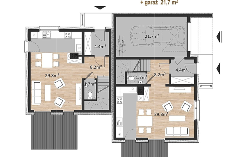 VERTICALO „A” – segment mieszkalny z garażem o pow. użytkowej 104,7m2 - działka frontowa o powierzchni ok. 300 m2: cena 439.000 zł